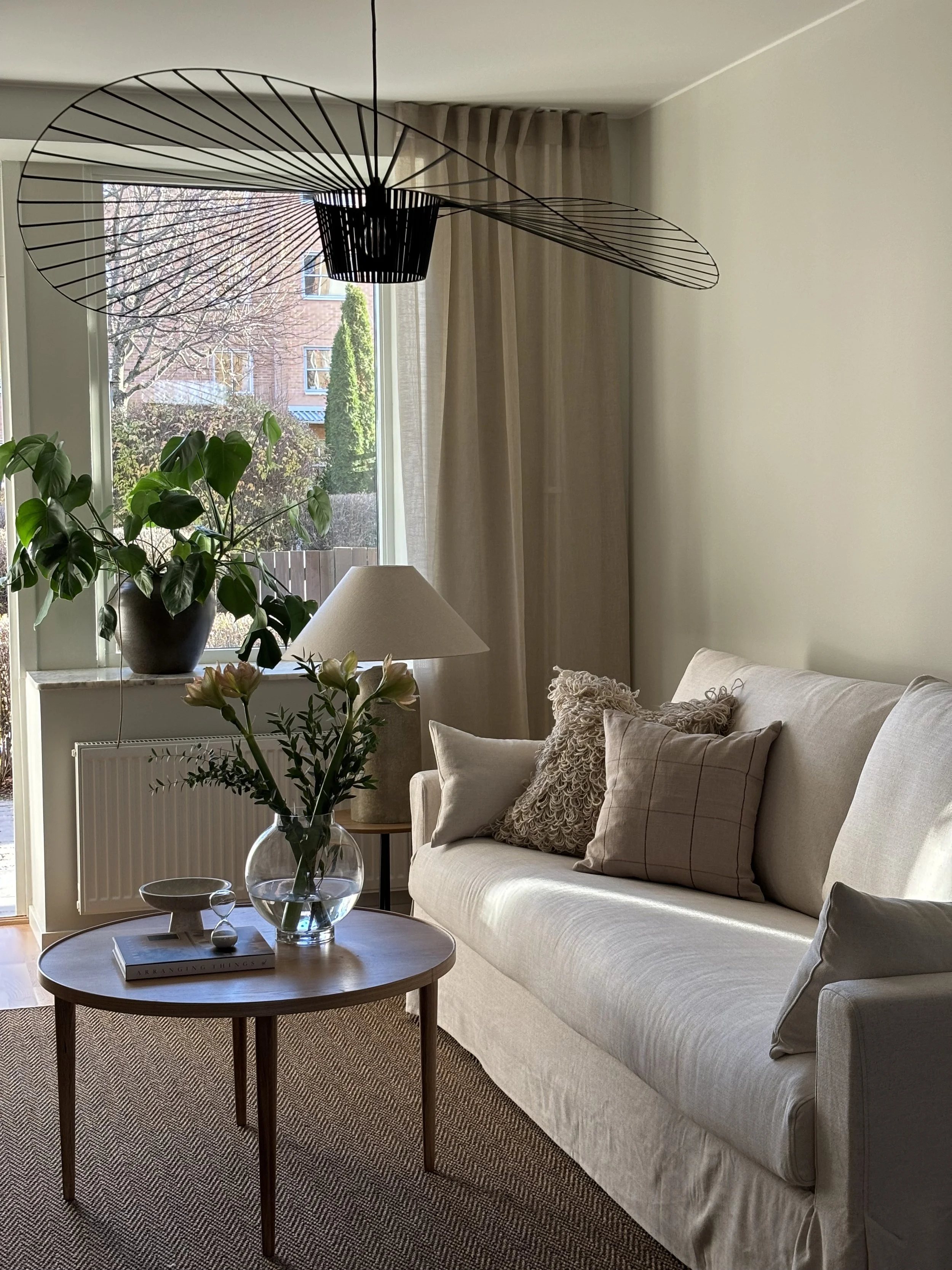 I detta alternativ på homestyling utgår vi från de möbler som redan finns i bostaden. Vi kompletterar med enstaka möbler och jobbar mer med textilier, mattor, belysning, tavlor, blommor och dekorativa detaljer för att lyfta bostaden vid försäljning.